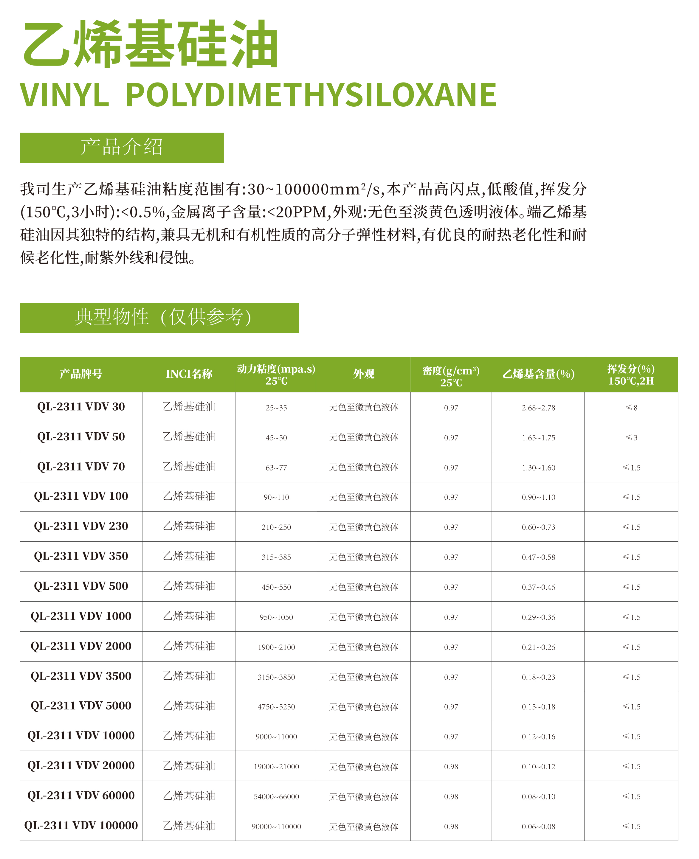 1、乙烯基硅油在電腦技術(shù)、電信及需要微型芯片的其它各種相關(guān)領(lǐng)域的發(fā)展中扮演著不可或缺的角色。為產(chǎn)品提供極限溫度及污染情況下的保護(hù)。
